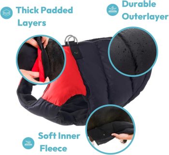 Padded Vest Dog Jacket – Red, Medium – Warm Zip Up Vest Fleece Jacket with Dual D Ring Leash Water Resistant for Small to Medium Dogs
