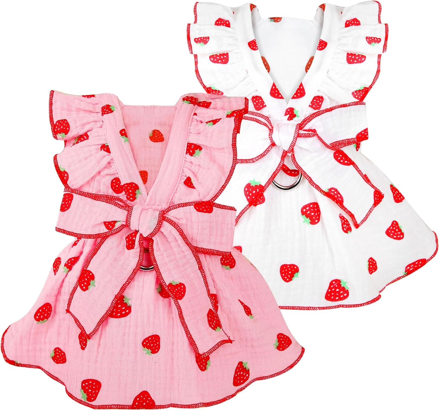 - CUTE AND CONVENIENT DESIGN : our girl dog clothes Cute have Unique design strawberry print and bows make furry friend pretty!There is a D-ring on the back of this beautiful wedding dog dress, which can for your convenience during daily walks