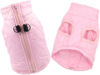 Dog Winter Coat – Warm Dog Clothes for Rain Snow Wind Cold Weather – Reflective Pink Adjustable Waterproof Windproof Pet Vest Jacket with Leash Hole for Small Medium Large Dogs Indoor Outdoor