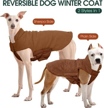 - Cozy Warm Dog Coat: The lining of the dog winter coat is fleece, which is comfortable and soft, and the dog vest coat wraps dog’s body 360 degrees.In addition, the turtleneck design can protect the dog’s neck from the cold wind, keeping dog warm in cold weather.
